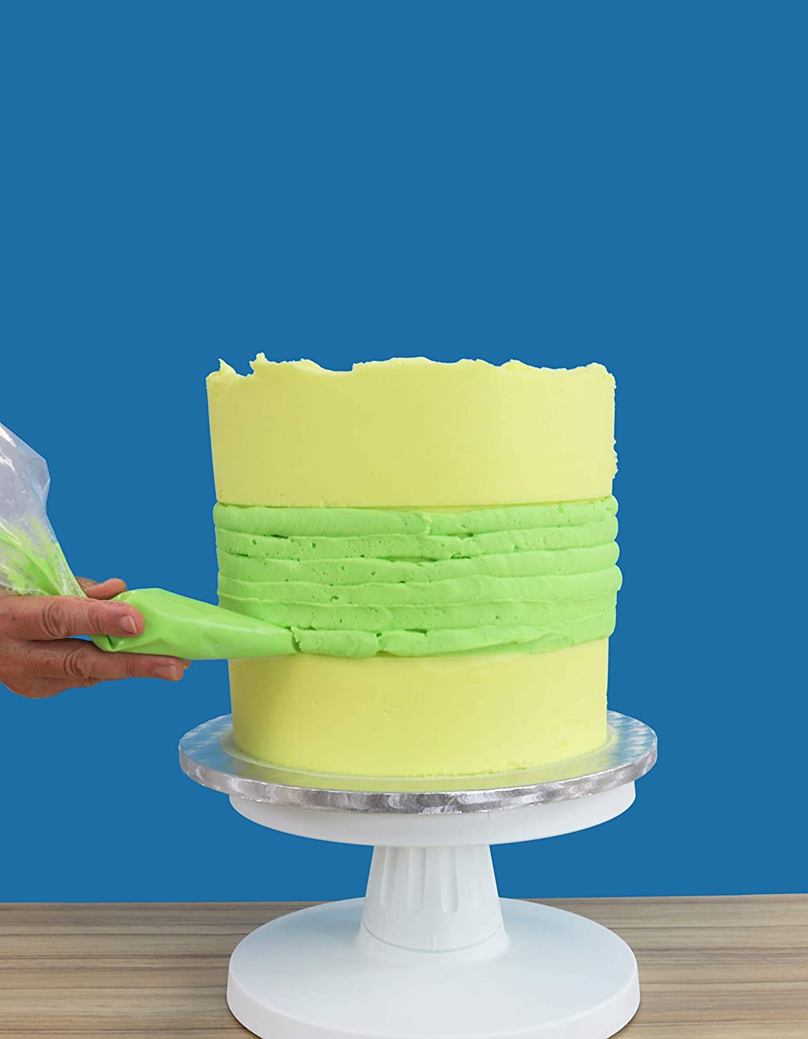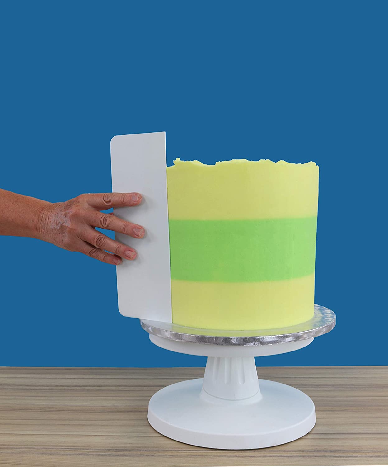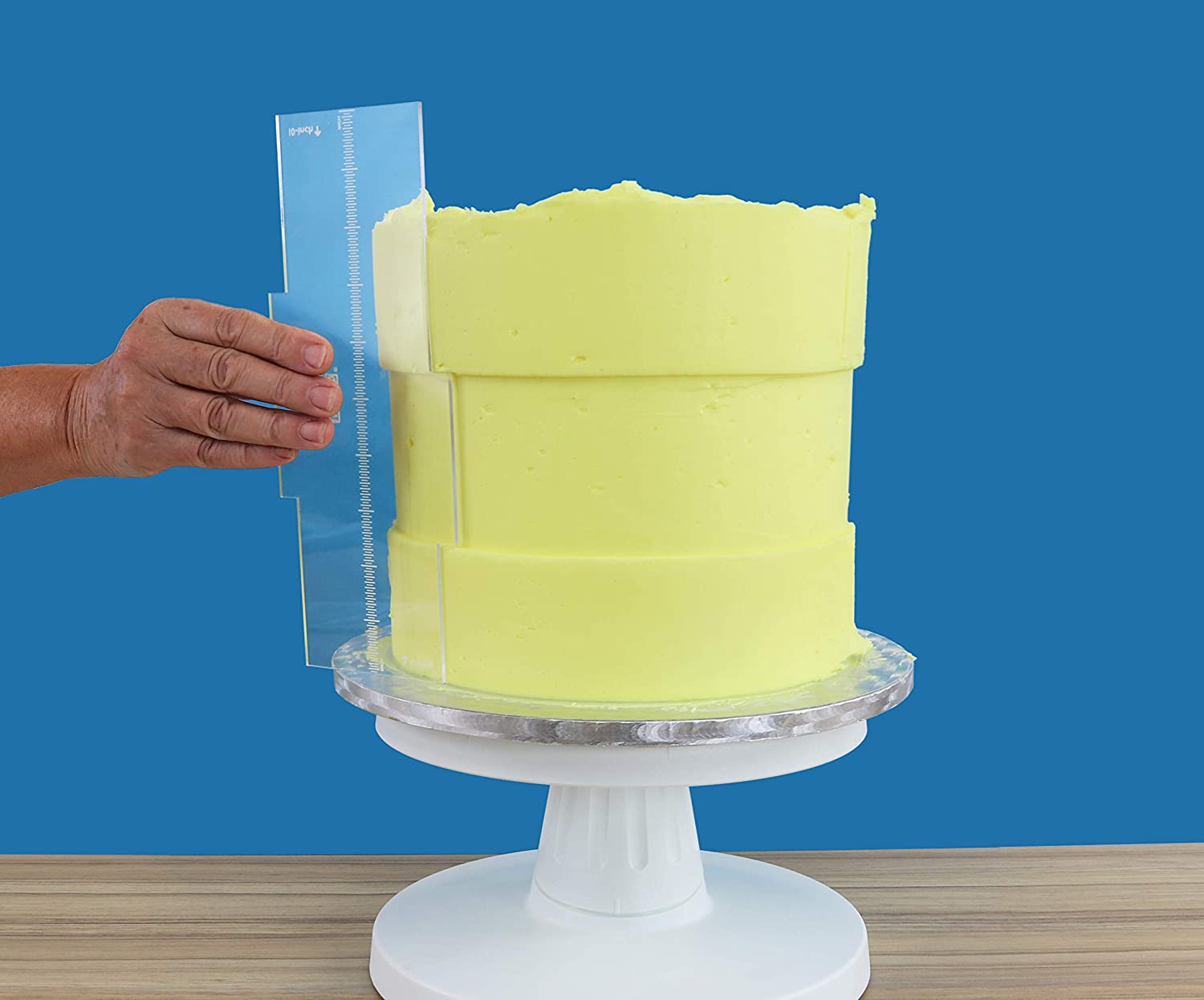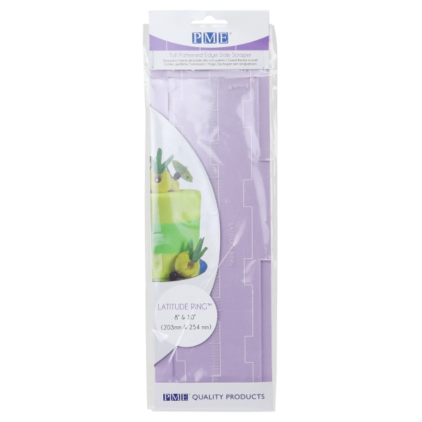 A ferramenta prática da PME pode ser usada para retirar o terço central do bolo. É ideal para criar vários desenhos de lados listrados. Pode ser usado melhor com cobertura real, creme de manteiga ou ganache. Retire o terço central de seus bolos de 20,3 cm e 25,4 cm de altura. Basta virar o raspador para alterar as alturas.