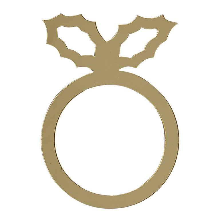 Adicione um toque de brilho dourado à sua exibição de Natal com este conjunto de seis anéis de guardanapo de Natal cintilantes. Estes aneis apresentam um formato de folha de azevinho acrílico que fornecerá o toque final perfeito para suas configurações de mesa. Use ano após ano para a decoração de mesa de Natal definitiva.