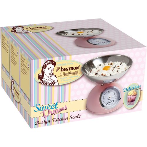 Esta balança de cozinha da Bestron tem um design retrô e uma capacidade de 5 kg.