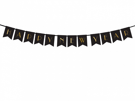 Banner Happy New Year Black,15x170cm