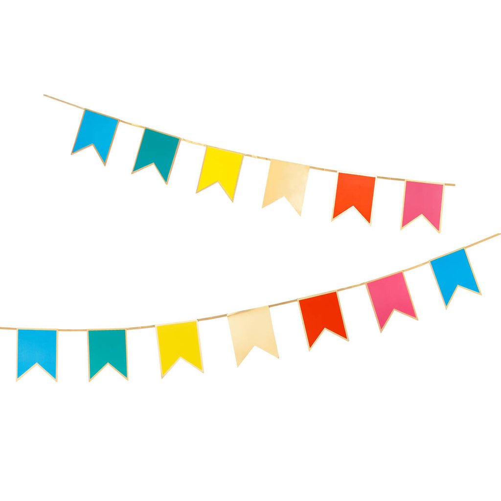 Dê um toque de cor a qualquer ambiente com esta bandeira inspirada no arco-íris! Com detalhes em folha de ouro, esta guirlanda tem 3m de comprimento e é perfeita para uma feliz celebração colorida.