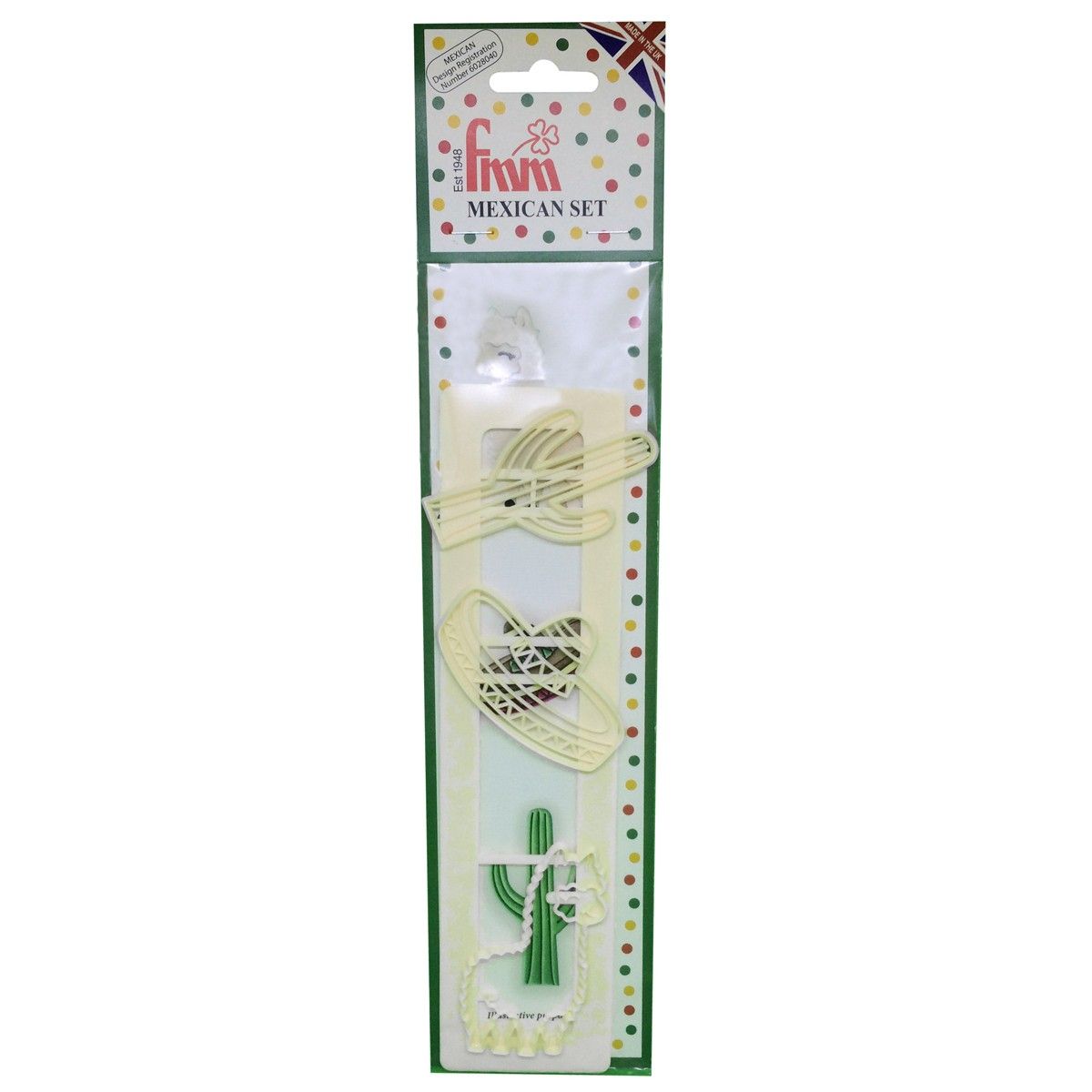 Com o FMM Mexican Alpaca Tappit, você pode criar lindas decorações temáticas mexicanas! Com este conjunto você pode fazer uma alpaca, cacto e sombrero. Este cortador  é ideal para fazer decorações para cupcakes, bolos e biscoitos.