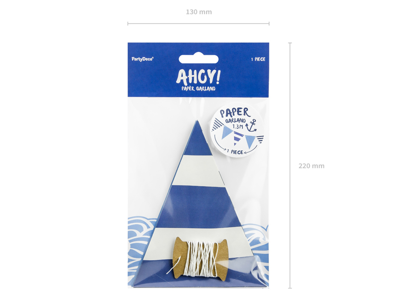 Chapéu de papel azul e branco listrado com corda, embalagem PartyDeco
