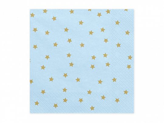 Guardanapos de 3 camadas Estrelas, azul celeste claro com estampa dourada, tamanho após o desdobramento aprox. 33 x 33 cm, tamanho após a montagem aprox. 16,5 x 16,5 cm.