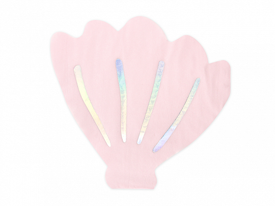Guardanapos de papel Concha na cor rosa com estampa iridescente, tamanho após desdobramento aprox. 26 x 25 cm, tamanho após a montagem aprox. 13x12,5cm.