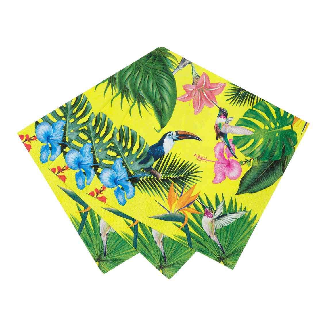 Estes guardanapos super divertidos apresentam plantas tropicais, flores e tucanos.Cada pacote contém 20 guardanapos de papel.Tamanho 33cm x 33cm desdobrado