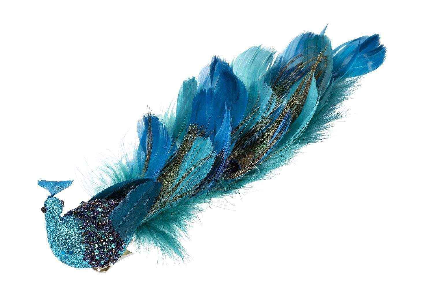 Este pavão de penas com clip é uma excelente decoração durante todo o ano! Com detalhes atraentes de glitter e penas, esta adição peculiar  é um presente adorável para um amigo que adora uma bela decoração.