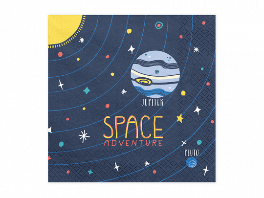 Guardanapos de papel Space Party, azul marinho com impressão, tamanho após o desdobramento aprox. 33 x 33 cm, tamanho após a montagem aprox. 16,5 x 16,5 cm.