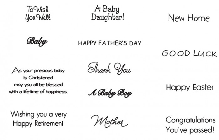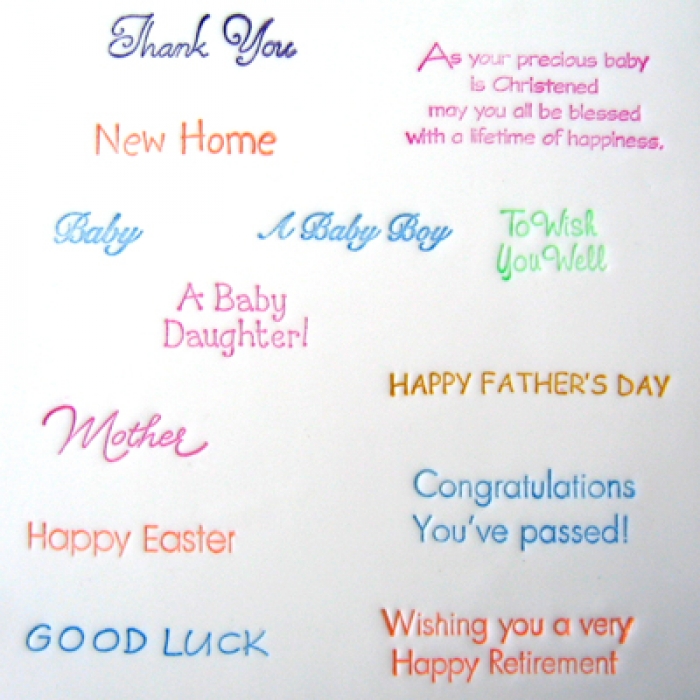 Uma variedade de desejos para muitas ocasiões podem ser gravados e sobrepostos com glacê real ou estampados com cores em glacê fresco.